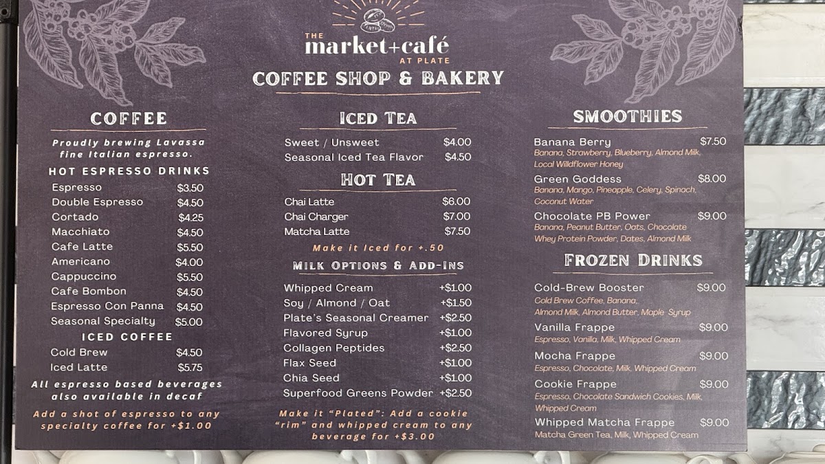 Step into The Market & Cafe At Plate Menu and you’ll immediately notice the variety waiting to be explored. From freshly baked pastries to hearty lunch plates, every option feels thoughtfully crafted. Whether you’re in the mood for a light salad, a rich sandwich, or something a bit more indulgent, there’s a spot on the menu that hits the mark. The flavors are approachable yet distinct, with ingredients that feel fresh and satisfying without ever being overwhelming.